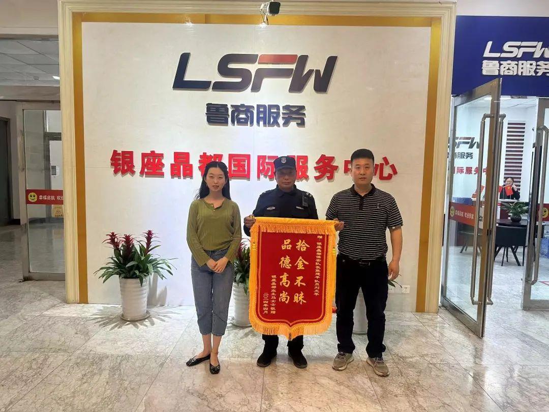 “拾金不昧,品德高尚”,近日,業(yè)主馬女士為銀座晶都項目送來錦旗,表達對秩序人員的感激之情。