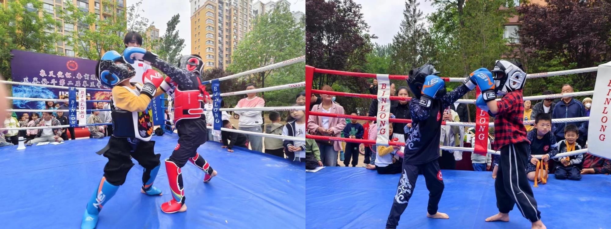 此次活動由魯商服務泉天優飲用水冠名,濟南城市公司常春藤項目主辦,共有100多位小業主參加了本次比賽。孩子們穿戴好頭盔、面罩、拳套等護具登上擂臺進行較量,臺上“激戰正酣”,臺下叫好聲不斷。