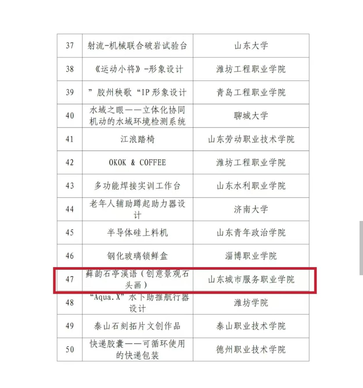 近日,在第五屆“省長杯”工業(yè)設(shè)計大賽中,山東城市服務(wù)職院獲得“省長杯”新星獎。這是山東城市服務(wù)職院首次參加此項比賽,在眾多知名企業(yè)和本科院校同臺競技的背景下,蘚韻石亭溪語(創(chuàng)意景觀石頭畫)在產(chǎn)品組中脫穎而出,獲此殊榮。