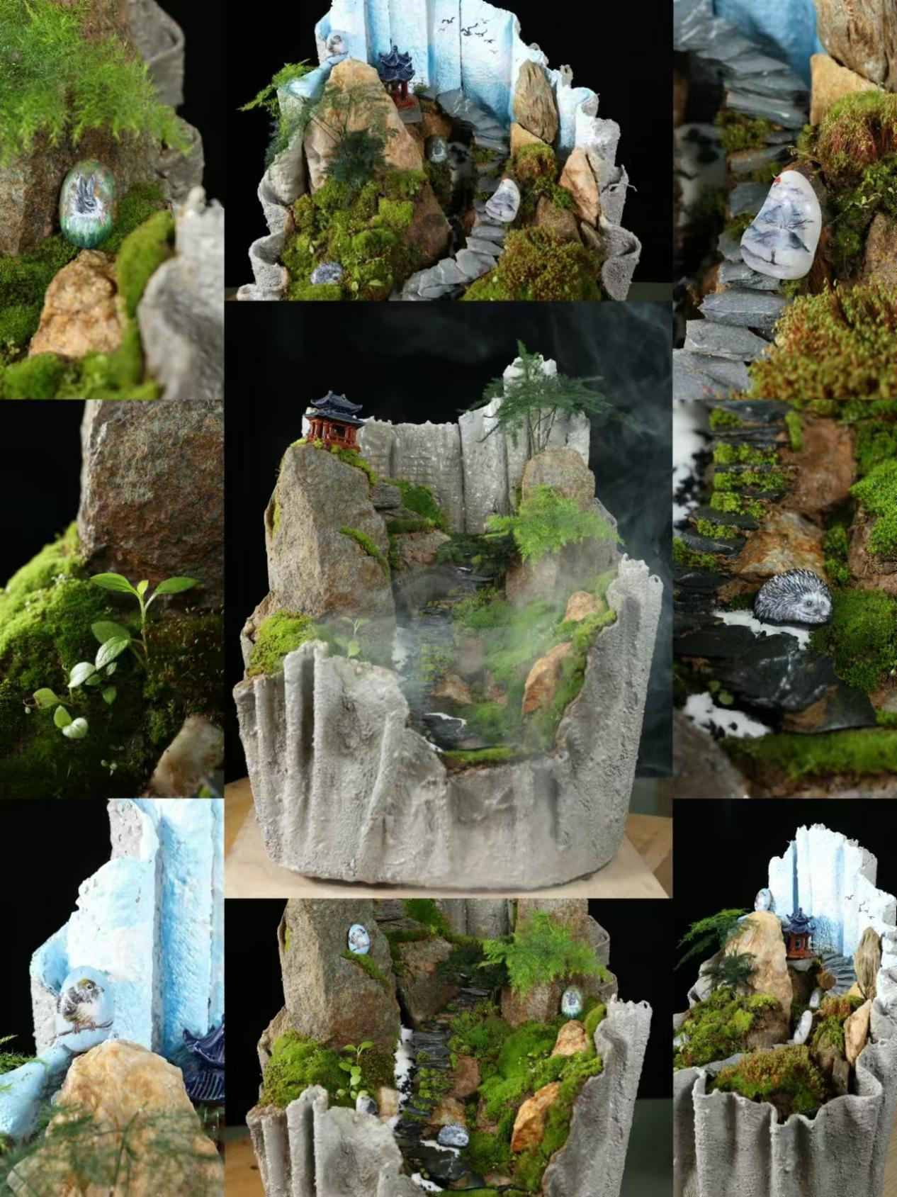 蘚韻石亭溪語(創(chuàng)意景觀石頭畫)由山東城市服務(wù)職院教師謝婷、李婷、任嘉賀創(chuàng)作,是以天然石頭為載體,結(jié)合現(xiàn)代繪畫工藝,呈現(xiàn)出獨特的藝術(shù)效果。作品創(chuàng)新性體現(xiàn)在對材料的全新運用,觀賞者能近距離感受自然與藝術(shù)的碰撞。石頭畫采用自然材質(zhì)、環(huán)保顏料,經(jīng)久耐看,兼具藝術(shù)價值與實用價值,是廣受業(yè)界關(guān)注的藝術(shù)觀賞品。