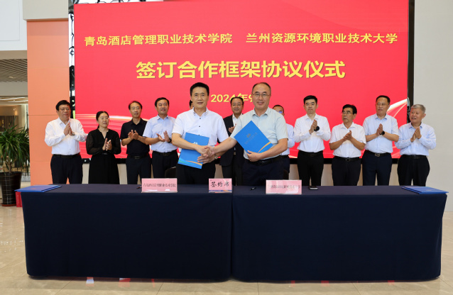 在青島酒店管理職院,張世珍一行考察了學校烹飪學院實訓基地等教學實訓場所,詳細了解了學校實訓基地建設與運行、師資隊伍建設、產教融合、人才培養等方面的情況。參觀結束后,青島酒店管理職院與蘭州資源環境職業技術大學、甘肅交通職業技術學院、酒泉職業技術學院三所院校簽訂對口幫扶與合作框架協議。