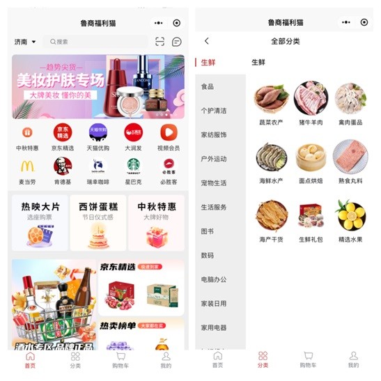 福利卡券可在“魯商福利貓”平臺進行消費,平臺涵蓋300+蛋糕品牌、10000+蛋糕門店、10000+影院,為員工提供了廣泛的美食休閑選擇。平臺還整合了京東、天貓等知名電商的供應(yīng)鏈資源,涵蓋22大商品品類、70000+商品,確保商品品質(zhì)與種類的豐富性。此外,平臺還支持美團、肯德基、星巴克等生活性消費,滿足員工日常生活的多樣化需求。