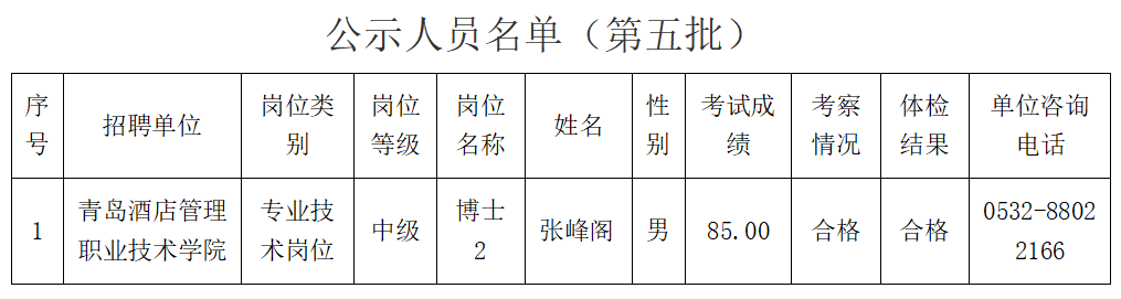 根據省委組織部、省人力資源和社會保障廳《關于印發2023年度省屬事業單位公開招聘工作實施方案的通知》(魯人社發〔2022〕23號)和省屬事業單位公開招聘有關政策規定,按照崗位招聘計劃,青島酒店管理職業技術學院組織完成了公開招聘考試、考察、體檢等工作,現對該單位第五批擬聘用人員進行公示。公示期為7個工作日,自2023年8月29日至2023年9月6日(不含節假日)。公示期間,如對公示人選有異議,請向山東省商業集團有限公司人力資源部反映。反映問題要實事求是,并告知真實姓名及聯系方式。