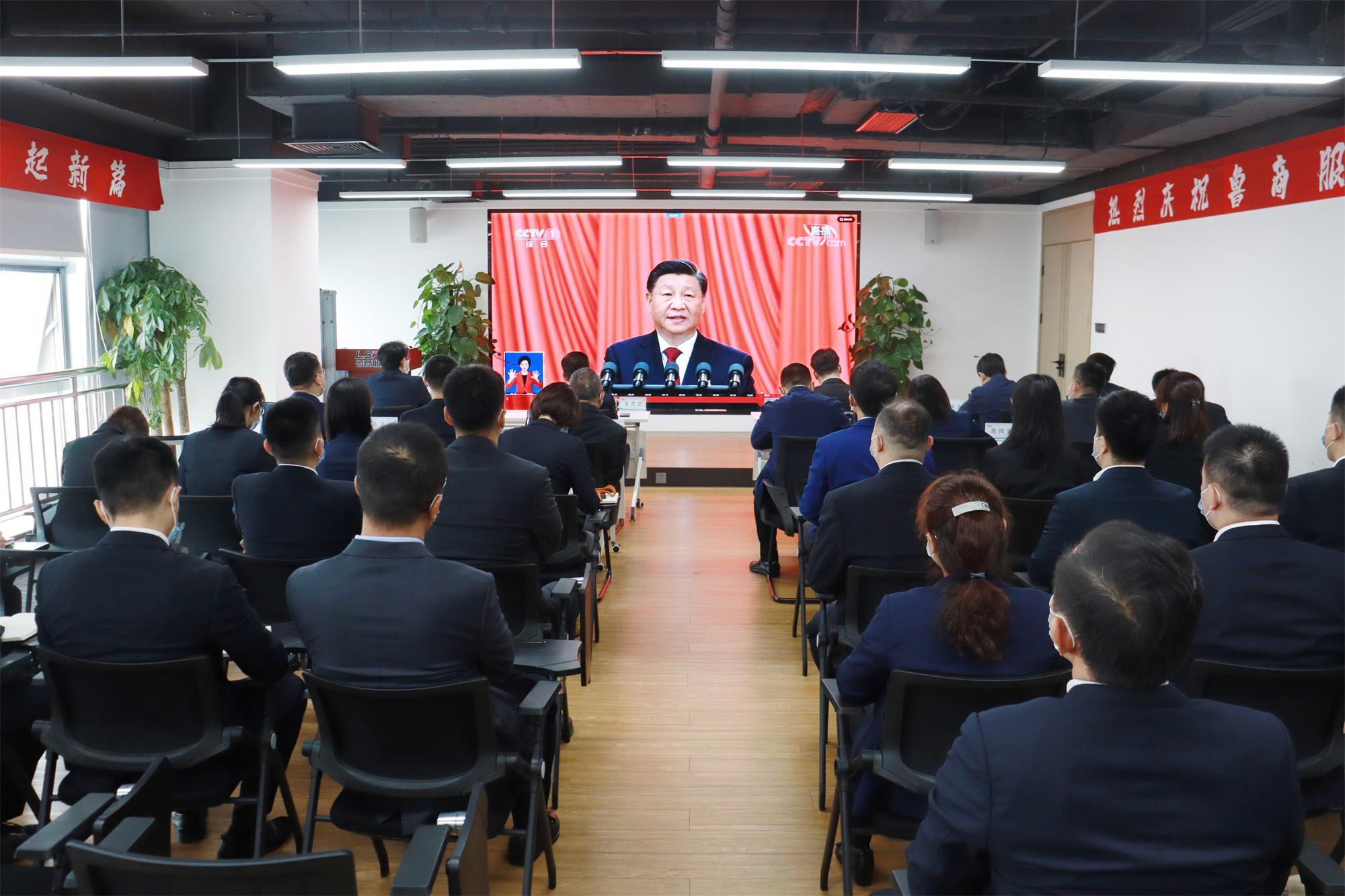 魯商集團黨委領導班子帶領總部全體職工在集團會議室集中收聽收看了現場直播,各直屬單位黨員干部職工分別在本單位收聽收看,167家銀座百貨超市門店、8家家居門店和56家家電商場同步播放開幕實況。